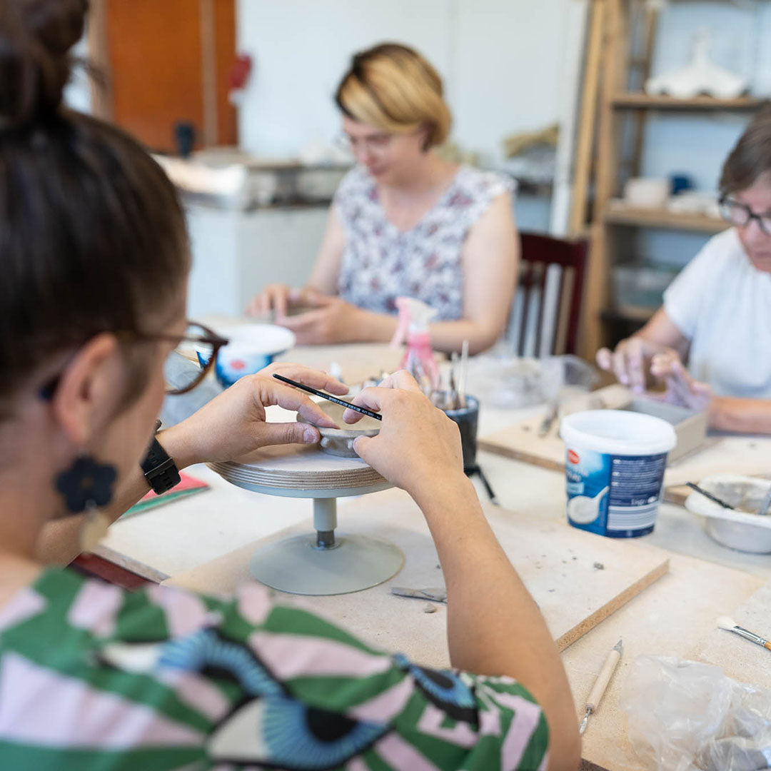 Keramiikkakurssilla (2,5 h) muotoillaan savitöitä käsinrakentaen ja luodaan uniikkeja keramiikkaesineitä, joissa näkyy ihanasti oma kädenjälki. Kurssilla voi tehdä joko yhden isomman tai useamman pienen työn. Muotoilun jälkeen töitä voi koristella erilaisin pintakuvioin, lisäksi töiden ilmeen voi halutessaan viimeistellä engobe-värejä käyttäen.