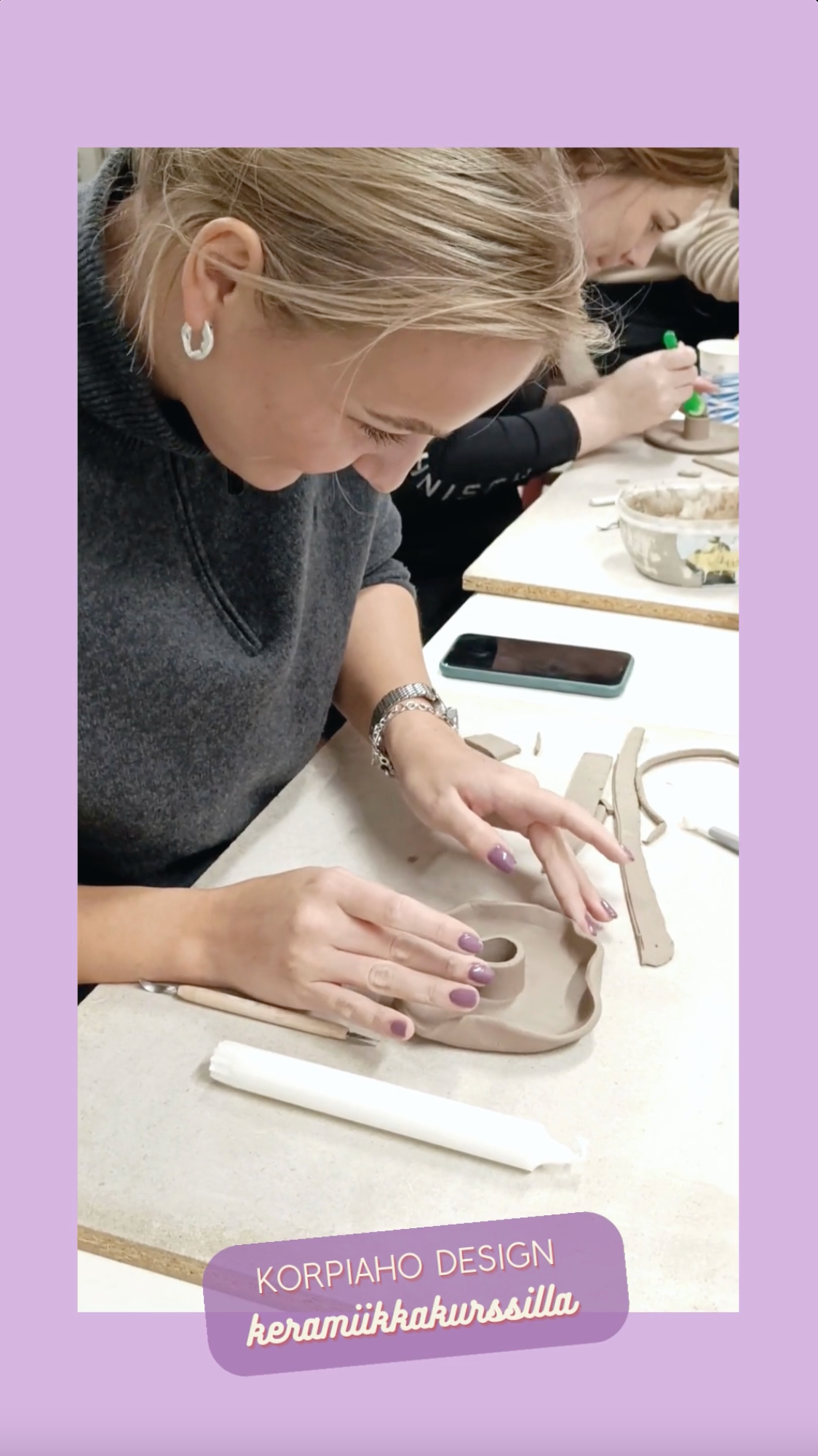 Tervetuloa viettämään rentoa ja inspiroivaa hetkeä saven parissa keskellä salolaista maalaismaisemaa! Savesta muotoillaan esineitä käsinrakentaen. Myöhemmin työt lasitetaan joko erillisellä lasituskerralla tai ohjaajan toimesta. Tämä keramiikkakurssi (2,5 h) tarjoaa kiireettömän luovan kokemuksen esimerkiksi perheen tai ystävien kanssa. 💜